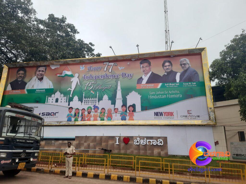 ಅಲ್ಲಿ ಸ್ವಾತಂತ್ರ್ಯೊತ್ಸವ ಶುಭಾಶಯ ಕೋರಿ ಜಿಲ್ಲಾ ಮಂತ್ರಿ ಸತೀಶ ಜಾರಕಿಹೊಳಿ, ಉತ್ತರ ಕ್ಷೇತ್ರದ ಶಾಸಕ ಆಸೀಫ್ ಶೇಠ ಜೊತೆಗೆ ಮಾಜಿ ಶಾಸಕ ಫಿರೋಜ ಶೇಠ ಪೊಟೊವನ್ನು ಹಾಕಲಾಗಿದೆ.