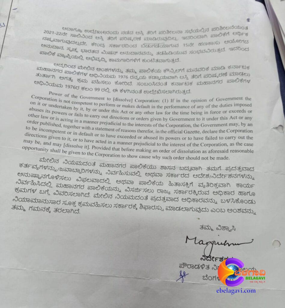 ಗಮನಿಸಬೇಕಾದ ಸಂಗತಿ ಎಂದರೆ, ಆಡಳಿತಾಧಿಕಾರಿ ಅವಧಿಯಲ್ಲಿನ. ವಿಷಯ ಮುಂದಿಟ್ಟುಕೊಂಡು ಬಿಜೆಪಿ ಹಿಡಿತದಲ್ಲಿರುವ ಪಾಲಿಕೆಗೆ ಕಾಂಗ್ರೆಸ್ ಸರ್ಕಾರ ನೋಟೀಸ್ ಕಳಿಸಿದೆ.