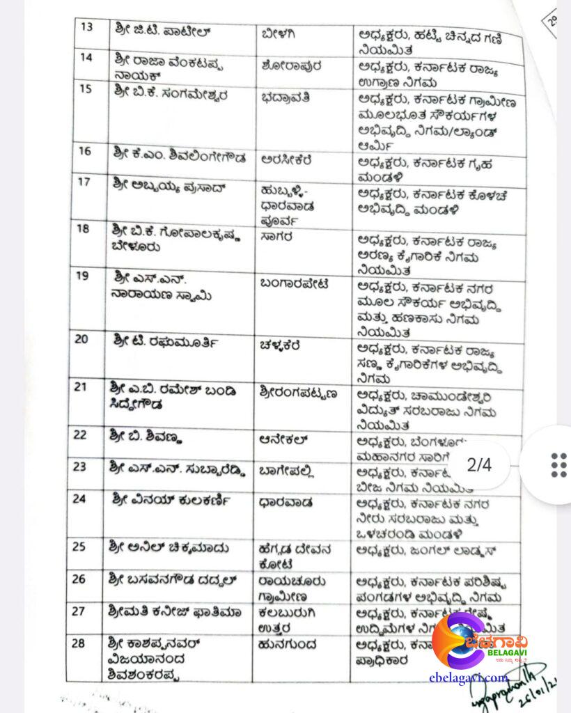 ಇನ್ನೂ ಸಾಗರ ಶಾಸಕ ಬೇಳೂರು ಗೋಪಾಲಕೃಷ್ಣ, ಹು,ಧಾ ಪೂರ್ವ ಶಾಸಕ ಪ್ರಸಾದ್ ಅಬ್ಬಯ್ಯ, ಹಾನಗಲ್ ಶಾಸಕ ಶ್ರೀನಿವಾಸ ಮಾನೆ, ಕಂಪ್ಲಿ ಗಣೇಶ್, ಆನೆಕಲ್ ಶಾಸಕ ಬಿ. ಶಿವಣ್ಣ ಸೇರಿದಂತೆ ಅನೇಕರಿಗೆ ನಿಗಮ ಮಂಡಳಿ ಅಧ್ಯಕ್ಷ ಸ್ಥಾನ ನೀಡಲಾಗಿದೆ. ಒಟ್ಟು 32 ಶಾಸಕರಿಗೆ ನಿಗಮ ಮಂಡಳಿ ಸ್ಥಾನ ಲಭಿಸಿದೆ.