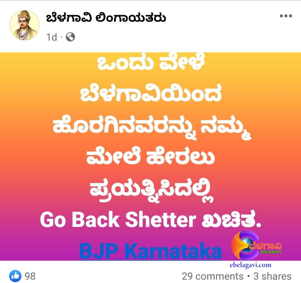 ಅಚ್ಚರಿಯ ಸಂಗತಿ ಎಂದರೆ ಬೆಳಗಾವಿ ಲಿಂಗಾಯತ ಎನ್ನುವ ಫೇಸಬುಕ್ ಪೇಜನಲ್ಲಿ ಶೆಟ್ಟರ್ ಅವರಿಗೆ ಗೋ ಬ್ಯಾಕ್ ಅಭಿಯಾನ ಶುರುವಿಟ್ಡುಕೊಂಡಿದ್ದಾರೆ.