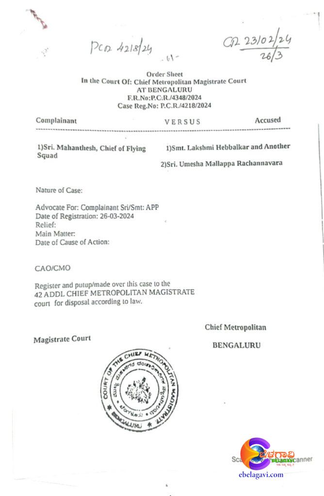 ಸಚಿವೆ ಹೆಬ್ಬಾಳಕರಗೆ ಸಮನ್ಸ್ ಜಾರಿ