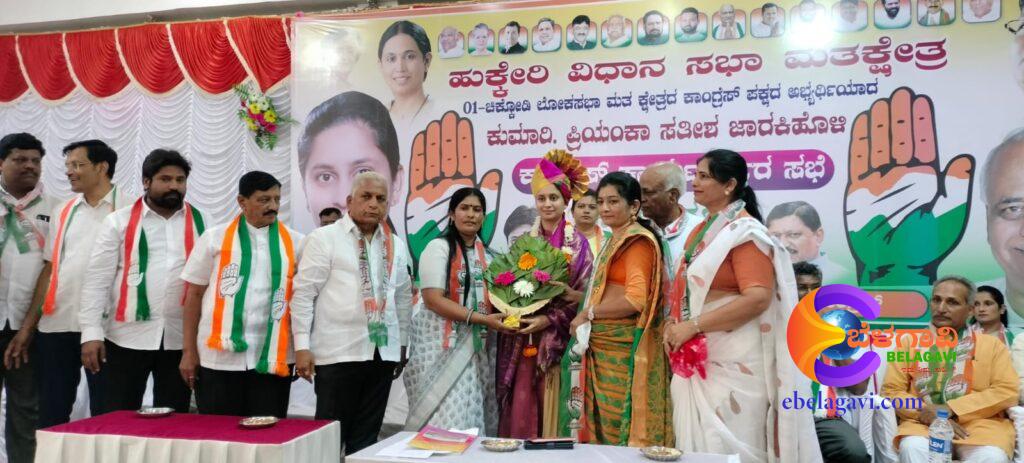 ಚಿಕ್ಕೋಡಿ ಲೋಕಸಭೆ ಕಾಂಗ್ರೆಸ್‌ ಪಕ್ಷದ ಅಭ್ಯರ್ಥಿ ಪ್ರಿಯಂಕಾ ಜಾರಕಿಹೊಳಿ ಅವರು ಮಾತನಾಡಿ, ನಿಮ್ಮೆಲ್ಲರ ಪ್ರೀತಿ, ಆರ್ಶೀವಾದದಿಂದ ನನಗೆ ಚಿಕ್ಕೋಡಿ ಲೋಕಸಭೆ ಕ್ಷೇತ್ರದ ಕಾಂಗ್ರೆಸ್ ಪಕ್ಷದ ಟಿಕೆಟ್ ಸಿಕ್ಕಿದೆ. ನಾನು ಎಂಬಿಎ ಪದವಿ ಪಡೆದಿದ್ದು, ಕೆಳದ ನಾಲ್ಕೈದು ವರ್ಷಗಳಿಂದ ಸಾರ್ವಜನಿಕವಾಗಿ ಅನೇಕ ಕೆಲಸಗಳಲ್ಲಿ ತೊಡಗಿದ್ದೇನೆ. ಸತೀಶ್ ಜಾರಕಿಹೊಳಿ ಫೌಂಡೇಶನ್ ಮೂಲಕ ಯುವಕರಿಗೆ ಆರ್ಮಿ, ಪೊಲೀಸ್‌, ಕೆಎಎಸ್‌, ಐಎಎಸ್‌ ಸೇರಿದಂತೆ ಸ್ಪರ್ಧಾತ್ಮಕ ಪರೀಕ್ಷೆಗಳ ತರಬೇತಿಗಳನ್ನು ಉಚಿತವಾಗಿ ನೀಡುತ್ತಿದ್ದೇವೆ. ಕೆಳದ ಬಾರಿ ಬೆಳಗಾವಿ ಜಿಲ್ಲೆಯ 58 ಸಾವಿರ ಎಸ್‌ಎಸ್‌ಎಲ್‌ಸಿ ವಿದ್ಯಾರ್ಥಿಗಳಿಗೆ “ನಮ್ಮ ಪಯಣ ಗೆಲುವಿನತ್ತ” ಪುಸ್ತಕಗಳನ್ನು ವಿತರಿಸಿದ್ದೇವೆಂದು ತಿಳಿಸಿದರು.