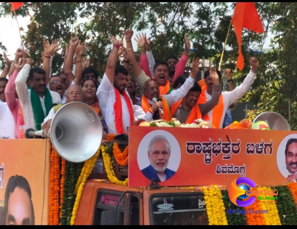 ಸಾವಿರಾರು ಸಂಖ್ಯೆಯಲ್ಲಿದ್ದ ನಾಮಪತ್ರ ಸಲ್ಲಿಸಲು ಹೊರಟ ಮೆರವಣಿಗೆಯಲ್ಲಿ ಭಗವಾ ಧ್ವಜಗಳ ಜೊತೆಗೆ ಪ್ರಧಾನಿ ನರೇಂದ್ರ ಮೋದಿಜಿಯವರ ಪೊಟೊ ರಾರಾಜಿಸುತ್ತಿತ್ತು. ಅಷ್ಟೇ ಅಲ್ಲ ಜೈ ಶ್ರೀರಾಮ ಘೋಷಣೆಗಳು ಕಿವಿಗಡಚಿಕ್ಕುವಂತೆ ಕೇಳಿ ಬಂದವು.