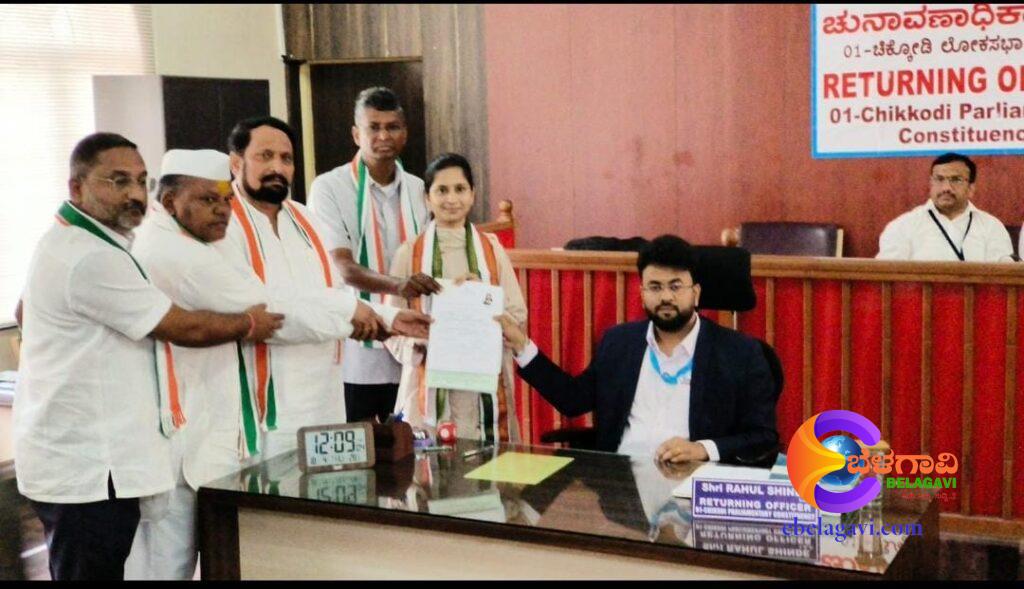 ಚಿಕ್ಕೊಡಿಯಲ್ಲಿ ನಾಮಪತ್ರ ಸಲ್ಲಿಸಿದ ಕಾಂಗ್ರೆಸ್ ಅಭ್ಯರ್ಥಿ ಪ್ರಿಯಾಂಕಾ ಜಾರಕಿಹೊಳಿ.