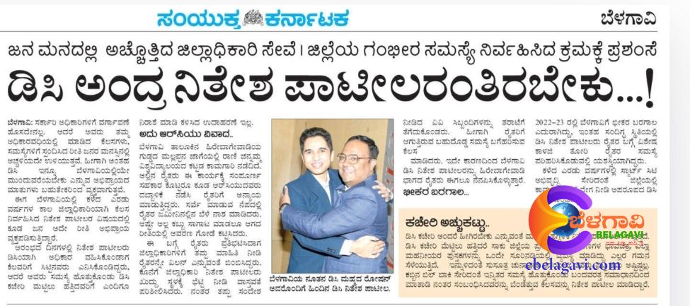 ಬೆಳಗಾವಿ ಜಿಲ್ಲಾಧಿಕಾರಿಯಾಗಿ ಅತ್ಯುತ್ತಮ ಕರ್ತವ್ಯ ನಿರ್ವಹಿಸಿ ವರ್ಗಾವಣೆಯಾಗಿರುವ ನಿತೇಶ್ ಪಾಟೀಲ ಅವರನ್ನು ಶುಕ್ರವಾರ (ಜು.05) ಜಿಲ್ಲಾಧಿಕಾರಿಗಳ ಕಚೇರಿಯ ಸಭಾಂಗಣದಲ್ಲಿ ಜಿಲ್ಲಾಡಳಿತ ವತಿಯಿಂದ, ಜಿಲ್ಲಾಮಟ್ಟದ ಅಧಿಕಾರಿಗಳು ಸನ್ಮಾನಿಸಿ, ಬೀಳ್ಕೊಟ್ಟರು.