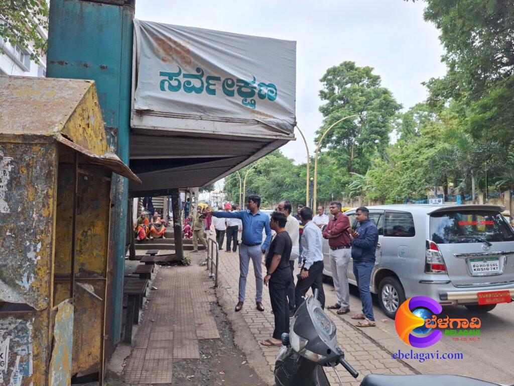 ಪಾಲಿಕೆ ಆಯುಕ್ತ ಅಶೋಕ ದುಡಗುಂಟಿ ಅವರು ಬಸ್ ತಂಗುದಾಣವನ್ನು ವೀಕ್ಷಿಸುತ್ತಿರುವುದು