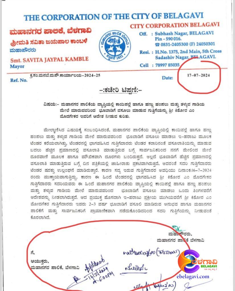 ಮೇಯರ್ ಸವಿತಾ ಕಾಂಬಳೆ ಅವರು ಕಚೇರಿ ಟಿಪ್ಪಣಿ ಎಂದು ಉಲ್ಲೇಖಿಸಿ `ಸಂಖ್ಯೆ ಇಲ್ಲದ’ ಪತ್ರವನ್ನು ದಿ, 17 ಜುಲೈ 2024 ರಂದು ಆಯುಕ್ತರಿಗೆ ಬರೆದರು. ಆದರೆ ಇಲ್ಲಿ ಆಯುಕ್ತರು ಮೇಯರ್ ಪತ್ರ ತಲುಪುವುದಕ್ಕಿಂತ ಮುಂಚಿತವಾಗಿಯೇ ಅಂದರೆ ಜುಲೈ 16 ರಂದೇ ಹೊಸಬರಿಗೆ ಗುತ್ತಿಗೆ ನೀಡಿ ಆದೇಶ ಮಾಡಿದ್ದಾರೆ,