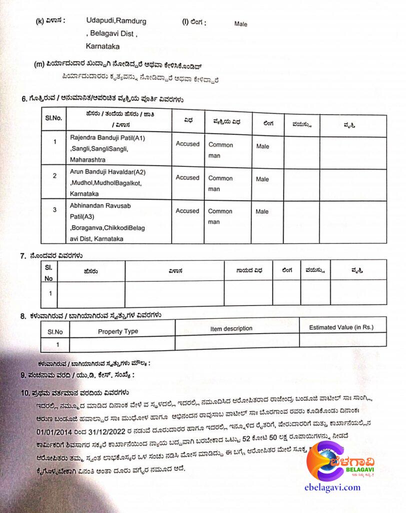 ಸಾಂಗಲಿಯ ರಾಜೇಂದ್ರ ಬಂಡೂಜಿ ಪಾಟೀಲ, ಬಾಗಲಕೋಟ ಜಿಲ್ಲೆಯ ಮುಧೋಳದ ಅರುಣ ಬಂಡೊಜಿ ಹವಾಲ್ದಾರ ಮತ್ತು ಚಿಕ್ಕೋಡಿ ತಾಲೂಕಿನ ಬೋರಗಾವಿಯ ಅಭಿನಂದನ್ ರಾವಸಾಹೇಬ ಪಾಟೀಲ ಎಂಬುವರ ವಿರುದ್ಧ ಪೊಲೀಸರು ದೂರು ದಾಖಲು ಮಾಡಿಕೊಂಡಿದ್ದಾರೆ,