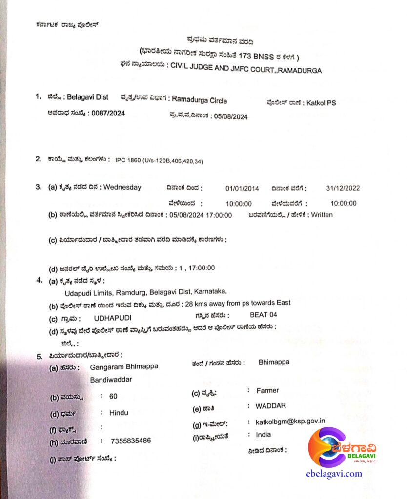 ರಾಮದುರ್ಗ ಠಾಣೆಯಲ್ಲಿ FIR ದಾಖಲು