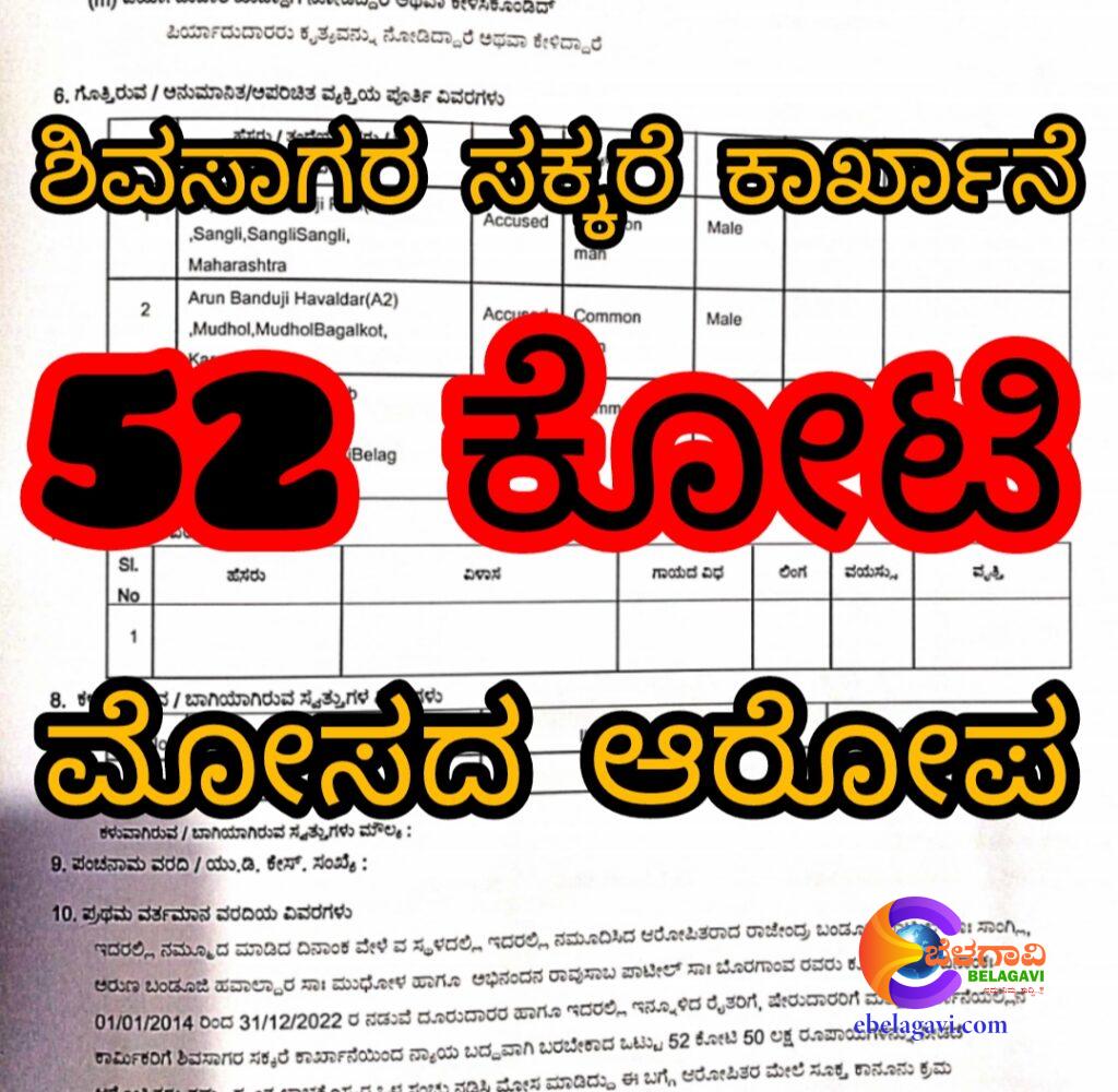 ರಾಮದುರ್ಗದ ಶಿವಸಾಗರ ಸಕ್ಕರೆ ಕಾರ್ಖಾನೆ ಯಿಂದ ಶೇರುದಾರರಿಗೆ ಬರಬೇಕಾಗಿದ್ದ ಸುಮಾರು 52 ಕೋಟಿ ರೂ ಗೂ ಅಧಿಕ ಮೊತ್ತದ ದುರುಪಯೋಗ ಮಾಡಿಕೊಂಡ ದೂರು ಈಗ ರಾಮದುರ್ಗ ಪೊಲೀಸ್ ಠಾಣೆ ಮೆಟ್ಟಿಲು ಹತ್ತಿದೆ.