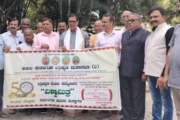 भव्य सोहळ्यासाठी सज्जब्राह्मण परिषदबेळगाव.महासभेचे अध्यक्ष अशोक हरनहल्ली म्हणाले की, अखिल कर्नाटक ब्राह्मण समाजाचे 50 वे अधिवेशन बंगळुरू येथे 18 आणि 19 जानेवारी रोजी समाजातील सर्व मठाधीशांच्या उपस्थितीत अर्थपूर्ण पद्धतीने साजरे केले जात आहे.एका खासगी हॉटेलमध्ये झालेल्या विश्वमित्र ब्राह्मण महासंमेलनाच्या संदर्भात जिल्ह्यातील विविध ब्राह्मण संस्थांच्या नेत्यांच्या बैठकीच्या अध्यक्षतेखाली ते बोलत होते.बेंगळुरूच्या पॅलेस ग्राऊंड्स येथील त्रिपुरावासिनी सभागृहामध्ये…