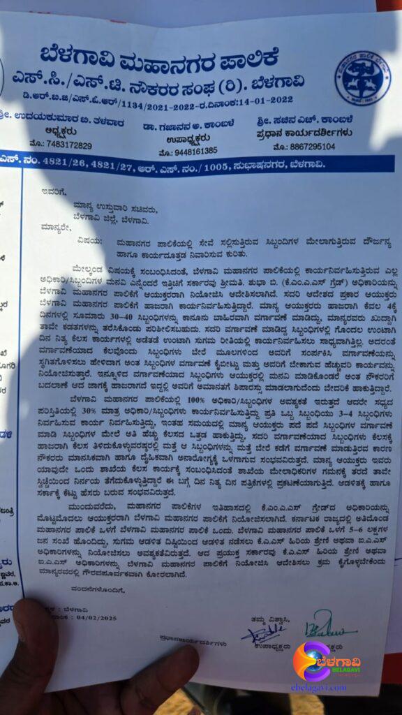 In the Belagavi Municipal Corporation, Mrs. Shubha B. (K.M.A.S. Grade) has illegally transferred about 30 to 40 employees within a few days of taking charge as Commissioner. It is stated in the petition submitted to the ministers that they themselves can personally open the files and check about this.