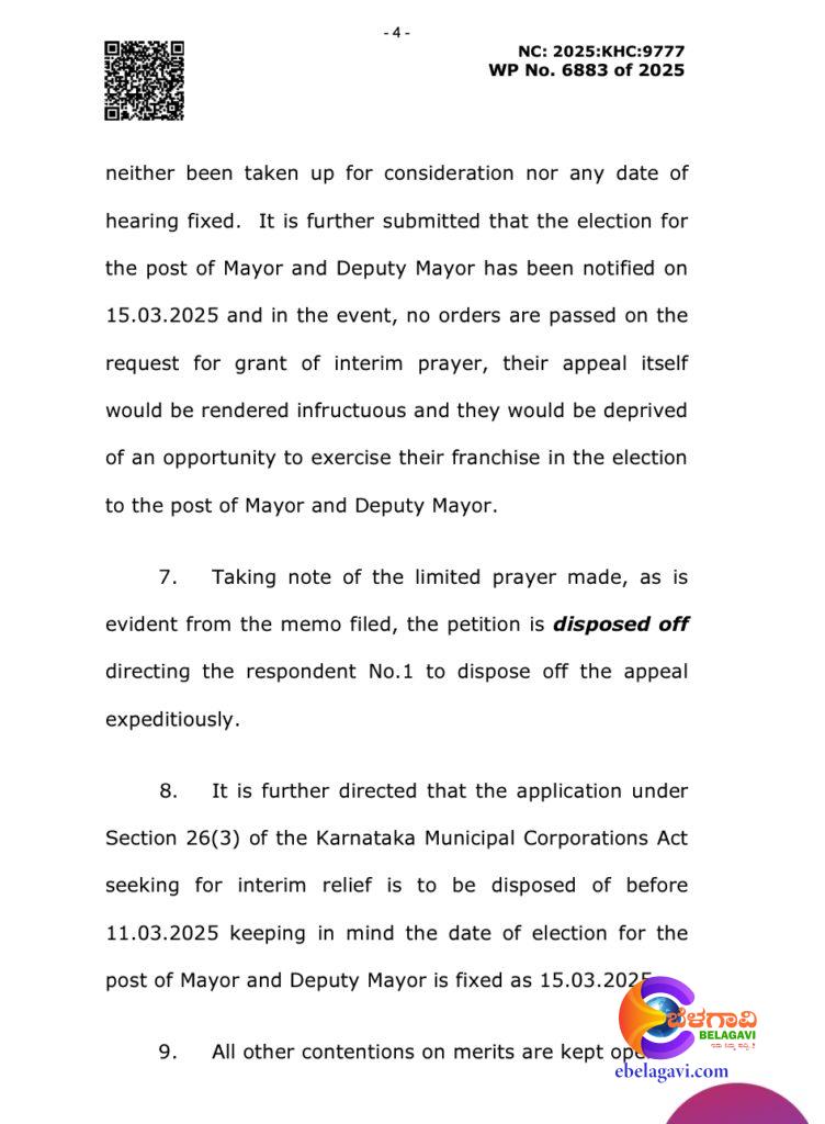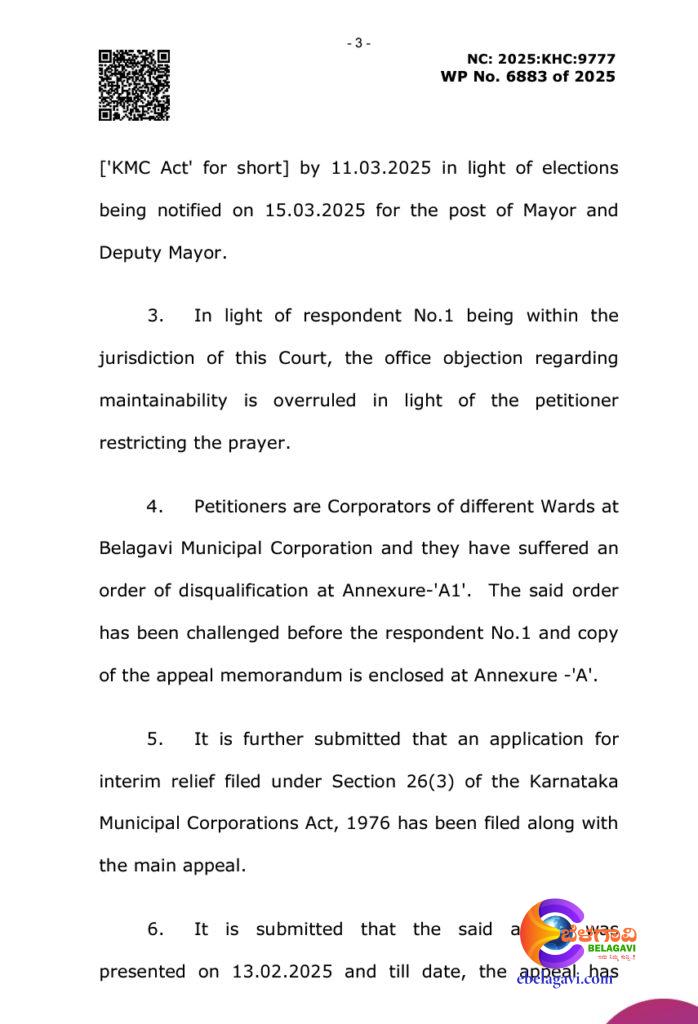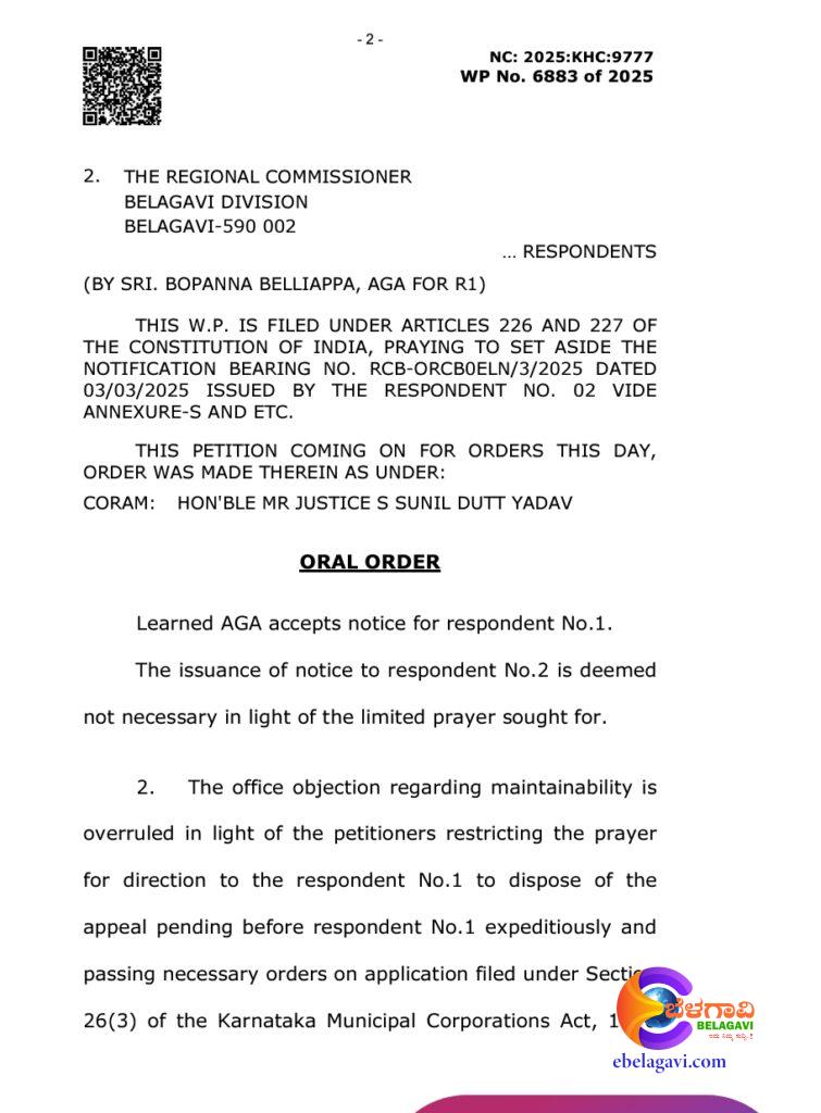 “तिनिसु कट्टे” प्रकरणात भाजपच्या दोन नगरसेवकांच्या सदस्यत्व रद्द करण्याच्या प्रादेशिक आयुक्तांच्या आदेशाला हायकोर्टाने स्थगिती दिली आहे.