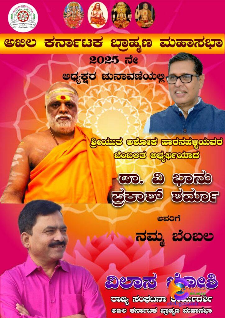 ಅಖಿಲ ಕರ್ನಾಟಕ ಬ್ರಾಹ್ಮಣ ಮಹಾಸಭಾ ಚುನಾವಣೆ ಎಪ್ರಿಲ್ 13 ರಂದು ನಿಗದಿಯಾಗಿದೆ. ರಾಜ್ಯದ 20. ಜಿಲ್ಲಾ ಕೇಂದ್ರದಲ್ಲಿ ಮತದಾನದ ವ್ಯವಸ್ಥೆ ಮಾಡಲಾಗಿದೆ.