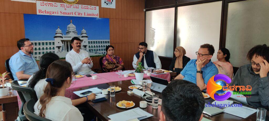 Belagavi: A high-level meeting was held between a delegation of French experts and officials from Belagavi City to assess the technical progress and implementation of ongoing Smart City projects. The meeting took place at the Smart City office conference hall and was attended by Mayor Mangesh Pawar, Deputy Mayor Vani Vilas Joshi, Municipal Commissioner Shubha B, and Smart City Managing Director Afrin Banu Ballary.