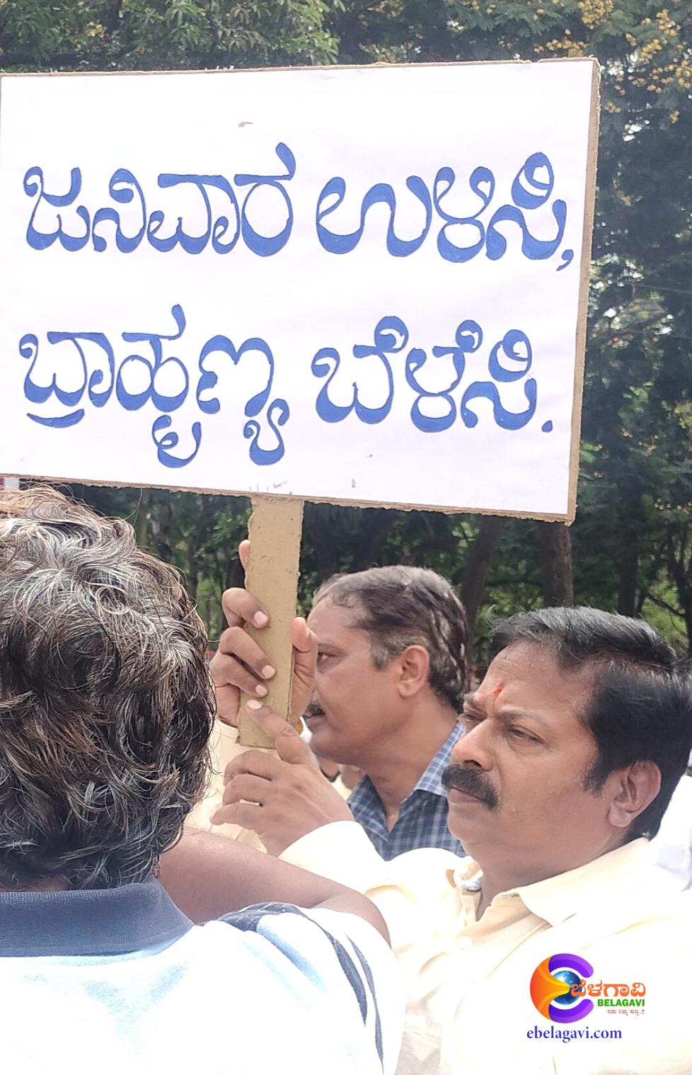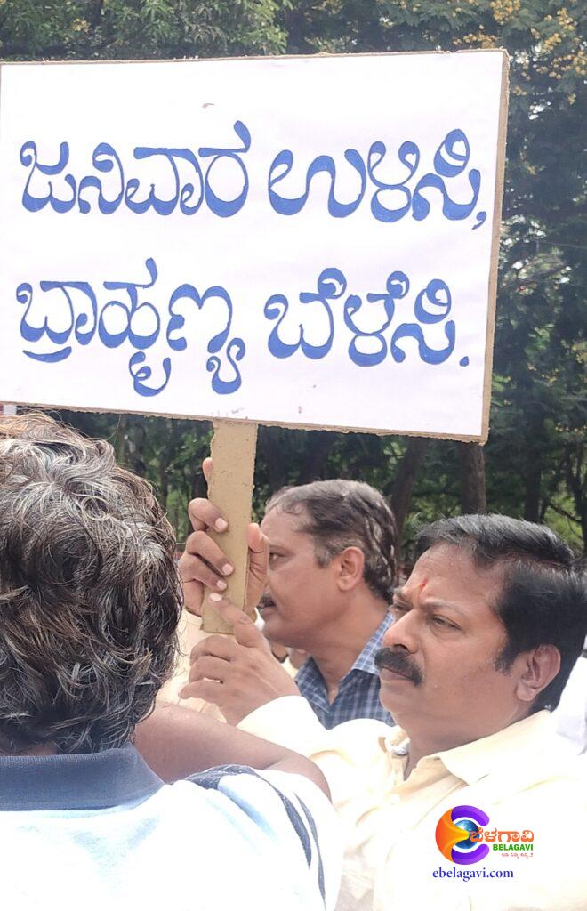 ही निदर्शने बेलगाव दक्षिणचे आमदार अभय पाटील आणि ब्राह्मण समाजाचे नेते अनिल पोतदार यांच्या नेतृत्वाखाली झाली.