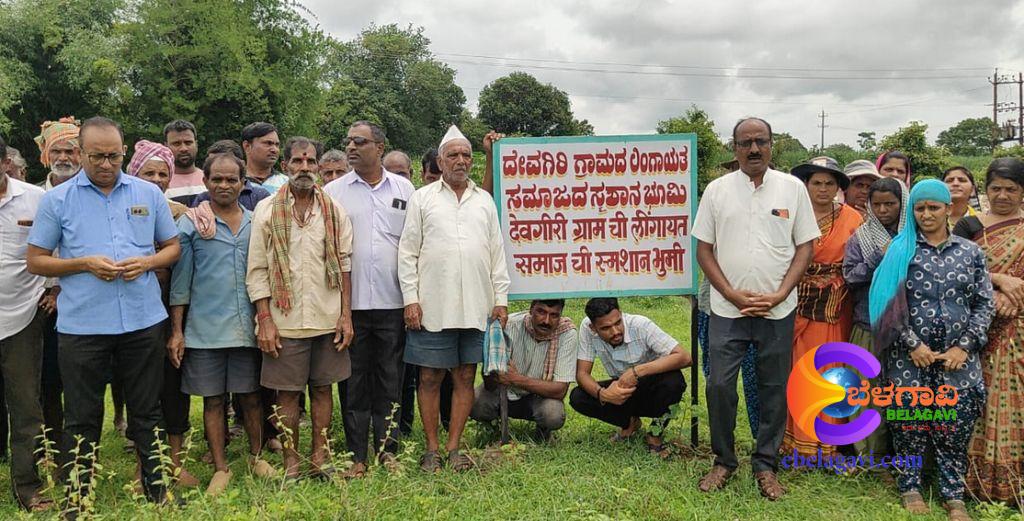 ಬೆಳಗಾವಿ: ಕಡೋಲಿ ಗ್ರಾಪಂಗೆ ವ್ಯಾಪ್ತಿಯಲ್ಲಿ ಬರುವ ದೇವಗಿರಿ ಗ್ರಾಮದಲ್ಲಿನ ಲಿಂಗಾಯತ ಸಮಾಜದ ಸ್ಮಶಾನಭೂಮಿಯನ್ನು ಕಬಳಿಸಲು ಯತ್ನ ಮಾಡಲಾಗುತ್ತಿದೆ ಎಂದು ಆರೋಪಿಸಿ ದೇವಗಿರಿ ಗ್ರಾಮಸ್ಥರು ಸ್ಮಶಾನಭೂಮಿಯಲ್ಲೇ ಶುಕ್ರವಾರ ಪ್ರತಿಭಟನೆ ನಡೆಸಿದರು.