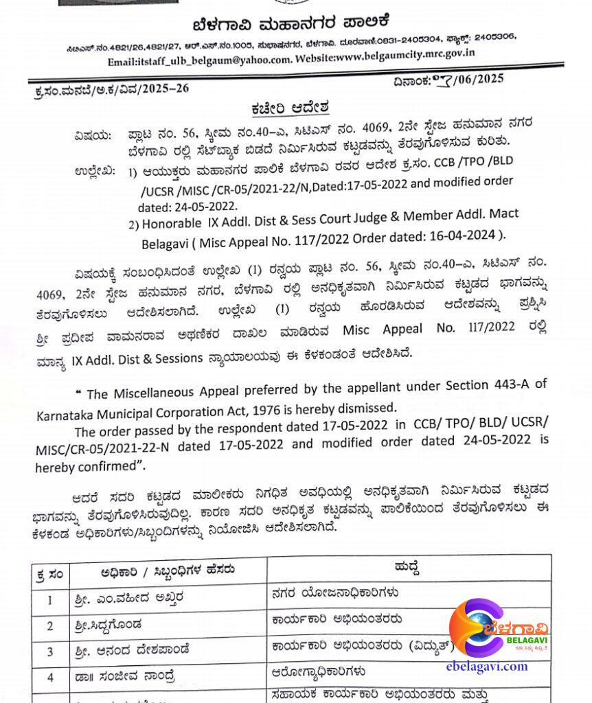 ಅಕ್ರಮ ಕಟ್ಟಡದ ವಿರುದ್ಧ ನಡೆದ ಮೊದಲ ದಾಳಿ ಬೆಳಗಾವಿ ಪಾಲಿಕೆಯಲ್ಲಿ ಹೊಸ ಅಧ್ಯಾಯಕ್ಕೆ ಬಾಗಿಲುತೆರೆದು, ಸಾರ್ವಜನಿಕರಲ್ಲಿ ನಂಬಿಕೆ, ಕಟ್ಟಡ ಮಾಫಿಯಾದಲ್ಲಿ ಕಂಪು ತಂದಿದೆ!