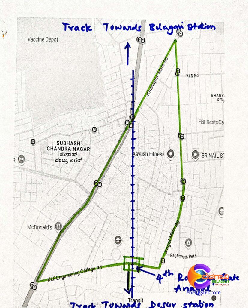 ಬೆಮ್ಕೋ ಸರ್ಕಲ್ , 3ನೇ ರೈಲ್ವೇ ಗೇಟ್ ಓವರ್ಬ್ರಿಡ್ಜ್ , ಅನಗೋಳ ನಾಕಾ , ಹರಿಮಂದಿರ ರಸ್ತೆ ಮೂಲಕ ಅನಗೋಳ ಕಡೆಗೆ ಸಂಚರಿಸಬೇಕು.