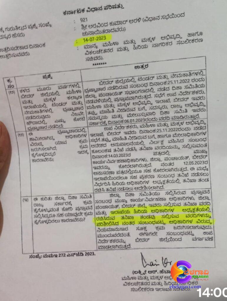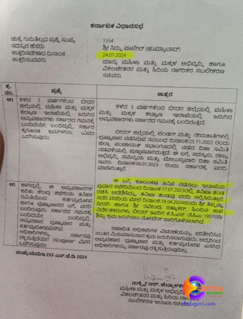 Serious allegations have been registered against Tipanna Shirsagi and Ravindra Ratnakar, who served as Deputy Directors and senior officials in the Bidar Women and Child Development Department. Though multiple investigation reports have confirmed these charges, the minister is accused of turning a blind eye and standing by the corrupt. ( E BELAGAVI)