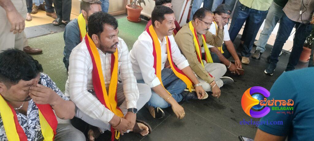 ಕರವೇ ಮುಖಂಡ ದೀಪಕ ಗುಡಗನಟ್ಟೆ ನೇತೃತ್ವದಲ್ಲಿ ಕರವೇ ಕಾರ್ಯಕರ್ತರು ಪಾಲಿಕೆಗೆ ನುಗ್ಗಿ ಧಿಕ್ಕಾರ ಹೇಳಿದರು.