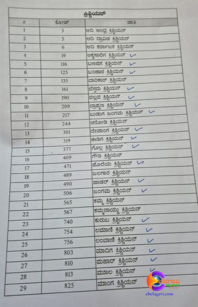 ಕರ್ನಾಟಕ ರಾಜ್ಯ ಹಿಂದುಳಿದ ವರ್ಗಗಳ ಆಯೋಗ ಪ್ರಕಟಿಸಿರುವ ಜಾತಿ-ಉಪಜಾತಿ ಪಟ್ಟಿಯಲ್ಲಿ ಹಿಂದೂ ಜಾತಿಗಳ ಪಕ್ಕದಲ್ಲಿ ಕ್ರಿಶ್ಚಿಯನ್ ಉಪಜಾತಿ ತೂರಿಬಿಡಲಾಗಿದೆ.