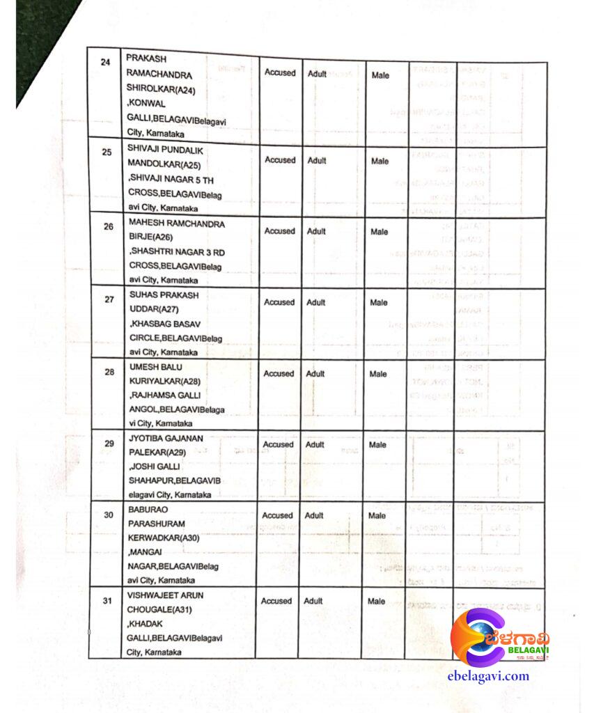 ಮಾಜಿ ಶಾಸಕ ಮನೋಹರ ಕಲ್ಲಪ್ಪ ಕಿಣೇಕರ, ಮಾಲೋಜಿರಾವ್ ಅಷ್ಟೆಕರ, ಪ್ರಕಾಶ ಮರಗಾಳಿ,ಶುಭಂ ಶೆಳಕೆ,ರಮಾಕಾಂತ ಕೊಂಡುಸ್ಕರ,ರಣಜಿತ್ ಪಾಟೀಲ,ಅಮರ ಯಳ್ಳೂರಕರ,ಗಜಾನನ ಪಾಟೀಲ,ನೇತಾಜಿ ಜಾಧವ,ಅಂಕುಶ ಅರವಿಂದ ಕೇಸರಕರ,ಮದನ್ ಬಾಮನೆ,ಪ್ರಶಾಂತ ಭಾತಖಾಂಡೆ,ಜಯೇಶ ಭಾತಖಾಂಡೆ,ಮಹೇಶ ನಾಯಿಕ,ಕಿರಣ ಗಾವಡೆ,ರೇಣು ಕಿಲ್ಲೇಕರ,ಸರಿತಾ ಪಾಟೀಲ,ಕಿರಣ ಉದ್ದರೆ,ಶ್ರೀಕಾಂತ ಕದಮ್,ಚಂದ್ರಕಾಂತ ಕೊಂಡುಸ್ಕರ ಸೇರಿದಂತೆ ಒಟ್ಟು 36 ಜನರ ವಿರುದ್ಧ ಪ್ರಕರಣ ದಾಖಲಾಗಿದೆ.