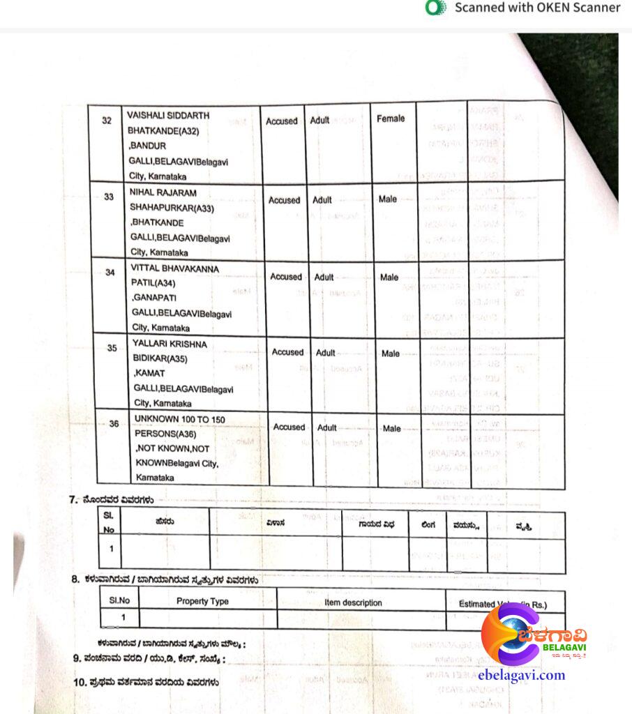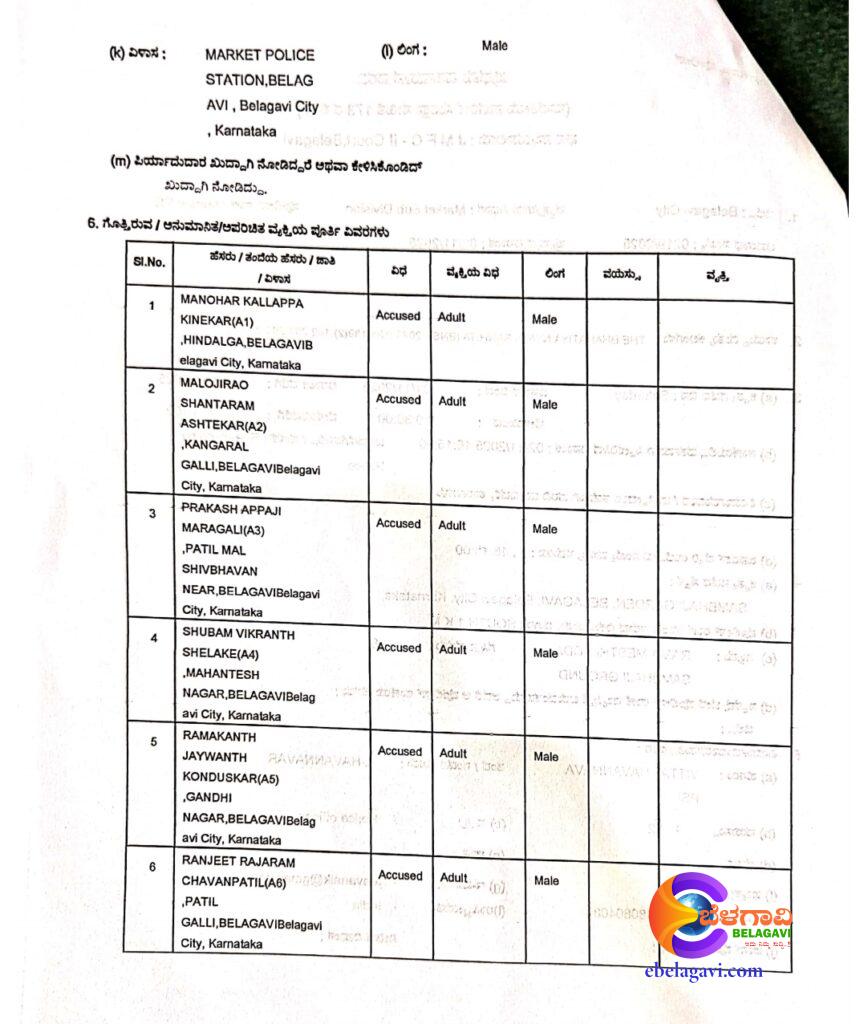 ಮಾಜಿ ಶಾಸಕ ಮನೋಹರ ಕಲ್ಲಪ್ಪ ಕಿಣೇಕರ, ಮಾಲೋಜಿರಾವ್ ಅಷ್ಟೆಕರ, ಪ್ರಕಾಶ ಮರಗಾಳಿ,ಶುಭಂ ಶೆಳಕೆ,ರಮಾಕಾಂತ ಕೊಂಡುಸ್ಕರ,ರಣಜಿತ್ ಪಾಟೀಲ,ಅಮರ ಯಳ್ಳೂರಕರ,ಗಜಾನನ ಪಾಟೀಲ,ನೇತಾಜಿ ಜಾಧವ,ಅಂಕುಶ ಅರವಿಂದ ಕೇಸರಕರ,ಮದನ್ ಬಾಮನೆ,ಪ್ರಶಾಂತ ಭಾತಖಾಂಡೆ,ಜಯೇಶ ಭಾತಖಾಂಡೆ,ಮಹೇಶ ನಾಯಿಕ,ಕಿರಣ ಗಾವಡೆ,ರೇಣು ಕಿಲ್ಲೇಕರ,ಸರಿತಾ ಪಾಟೀಲ,ಕಿರಣ ಉದ್ದರೆ,ಶ್ರೀಕಾಂತ ಕದಮ್,ಚಂದ್ರಕಾಂತ ಕೊಂಡುಸ್ಕರ ಸೇರಿದಂತೆ ಒಟ್ಟು 36 ಜನರ ವಿರುದ್ಧ ಪ್ರಕರಣ ದಾಖಲಾಗಿದೆ.