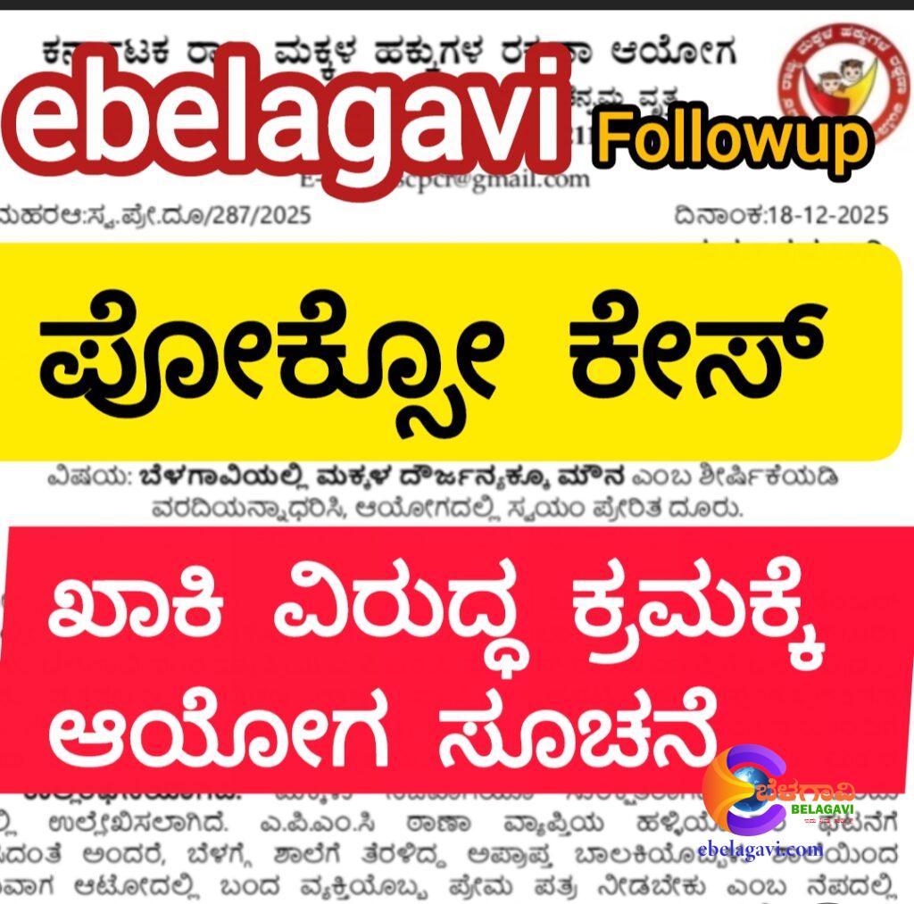 ಬೆಳಗಾವಿ: ಡಿಸೆಂಬರ್ ತಿಂಗಳಲ್ಲೇ ಬೆಳಗಾವಿ ಜಿಲ್ಲೆಯಲ್ಲಿ ನಾಲ್ಕು ಪೊಕ್ಕೊ (ಮಕ್ಕಳ ಲೈಂಗಿಕ ದೌರ್ಜನ್ಯ) ಪ್ರಕರಣಗಳು ದಾಖಲಾಗಿದ್ದರೂ, ಅವುಗಳಲ್ಲಿ ಸಂಬಂಧಿಸಿದ ಪೊಲೀಸ್ ಠಾಣೆಗಳು ದೂರು ನಿರ್ಲಕ್ಷ್ಯ ತೋರಿವೆ ಎಂಬ ಗಂಭೀರ ಆರೋಪದ ಹಿನ್ನೆಲೆಯಲ್ಲಿ ರಾಜ್ಯ ಮಕ್ಕಳ ಹಕ್ಕುಗಳ ರಕ್ಷಣಾ ಆಗನ್ ಸ್ವಯಂಪ್ರೇರಿತ ದೂರು ದಾಖಲಿಸಿಕೊಂಡಿದೆ.