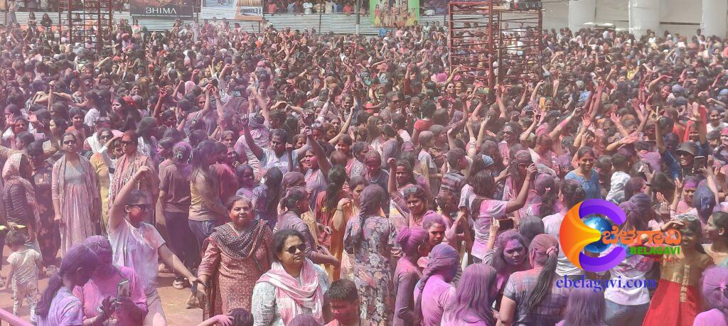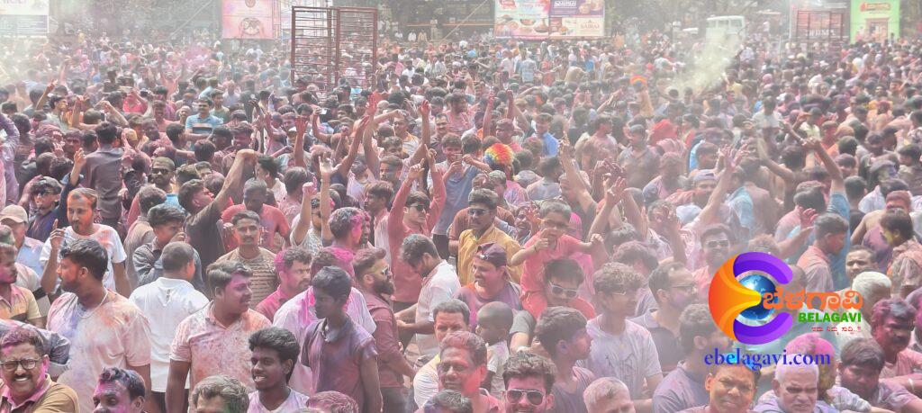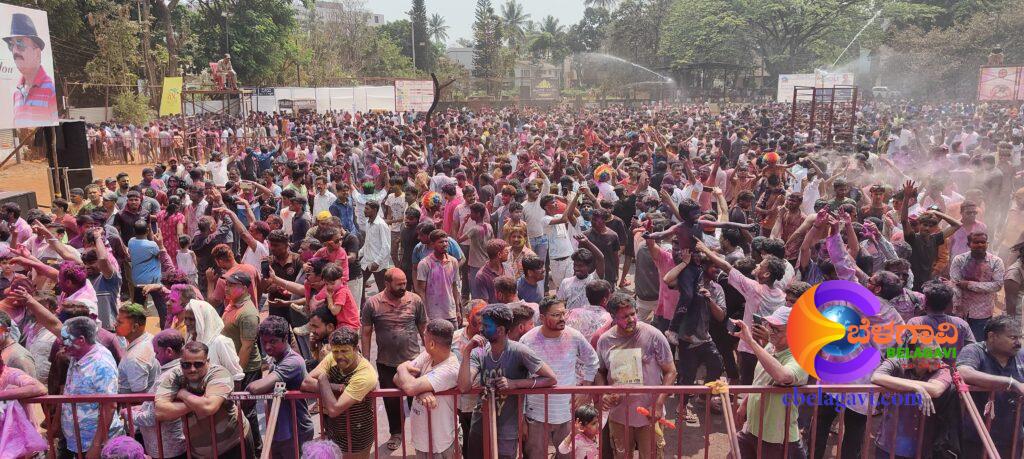 ಕಾರ್ಯಕ್ರಮ ಆರಂಭಕ್ಕೂ ಮುನ್ನವೇ ಮೈದಾನ ಕಿಕ್ಕಿರಿದು ತುಂಬಿತ್ತು. ಪ್ರವೇಶದ್ವಾರದಿಂದಲೇ ಗುಲಾಲ್ ಧೂಳು ಗಗನಕ್ಕೇರಿದ ದೃಶ್ಯ ಕಣ್ಮನ ಸೆಳೆಯಿತು. ಜಲಮಳೆಯ ಸಿಂಪಡಣೆ, ಡಿಜೆ ಧ್ವನಿ, ಕೈ ಎತ್ತಿ ಕುಣಿದ ಜನಸಾಗರ—ಹಬ್ಬದ ರಂಗ ಮತ್ತಷ್ಟು ಗಾಢವಾಯಿತು.