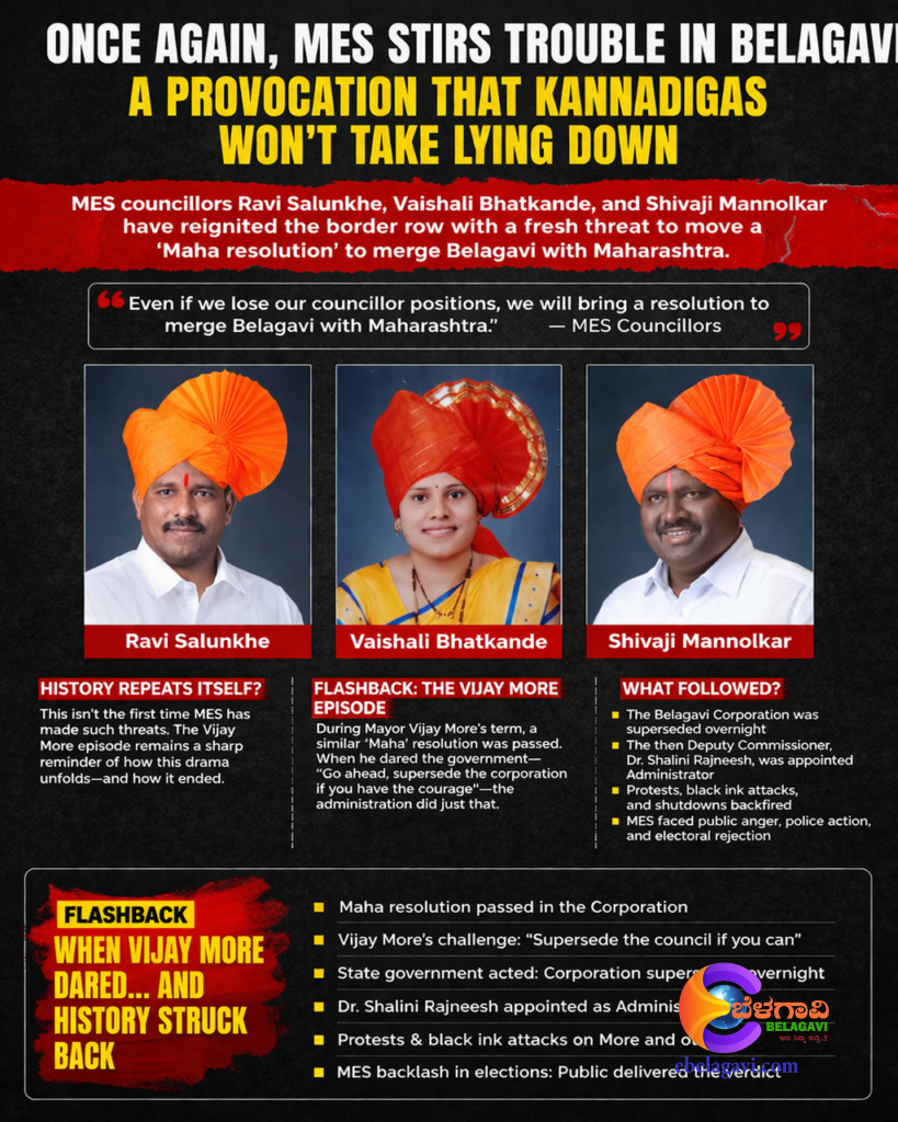 “ನಗರಸೇವಕ ಸ್ಥಾನ ಹೋದರೂ ಪರವಾಗಿಲ್ಲ”, “ಬೆಳಗಾವಿ ಮಹಾರಾಷ್ಟ್ರಕ್ಕೆ ಸೇರಿಸುವ ನಿರ್ಣಯ ತರುತ್ತೇವೆ” ಎಂಬ ಧ್ವನಿ ಜನಪ್ರತಿನಿಧಿಗಳ ಜವಾಬ್ದಾರಿಯ ಭಾಷೆಯಲ್ಲ; ಅದು ಎಂಇಎಸ್‌ನ ಹಳೆಯ ಹುಚ್ಚಾಟದ ಮತ್ತೊಂದು ಅವತಾರ.