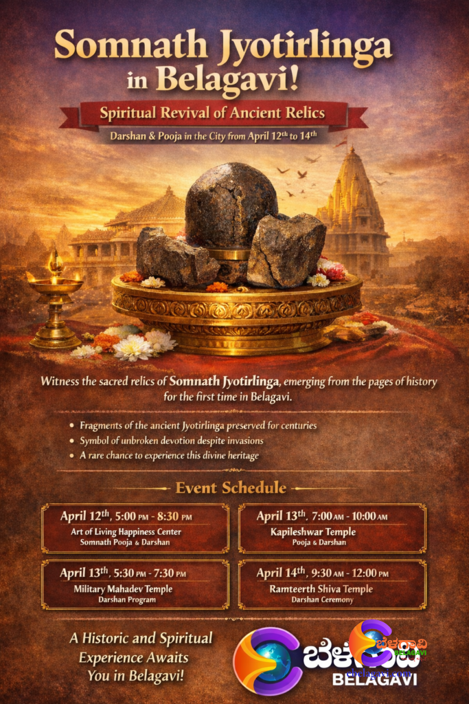 ಸಹಸ್ರ ವರ್ಷಗಳ ಇತಿಹಾಸದ ಗಾಯ, ಶತಮಾನಗಳ ಭಕ್ತಿ, ಸಂರಕ್ಷಣೆಯ ನಿಷ್ಠೆ ಮತ್ತು ಪುನಃ ಪ್ರತಿಷ್ಠಾಪನೆಯ ಸಂಕಲ್ಪ—ಈ ನಾಲ್ಕು ಭಾವಗಳ ಸಂಗಮವಾಗಿರುವ ಪವಿತ್ರ ಸೋಮನಾಥ ಜ್ಯೋತಿರ್ಲಿಂಗದ ಅವಶೇಷಗಳು ಇದೀಗ ಬೆಳಗಾವಿಯ ಭಕ್ತರಿಗೆ ದರ್ಶನ ನೀಡಲಿವೆ. ಏಪ್ರಿಲ್ 12ರಿಂದ 14ರವರೆಗೆ ನಗರದ ನಾಲ್ಕು ಪ್ರಮುಖ ಕೇಂದ್ರಗಳಲ್ಲಿ ಈ ಅಪರೂಪದ ದರ್ಶನ ಮತ್ತು ಪೂಜೆ ಕಾರ್ಯಕ್ರಮ ನಡೆಯಲಿದ್ದು, ಧಾರ್ಮಿಕ ವಲಯದಲ್ಲಿ ವಿಶೇಷ ಭಕ್ತಿಭಾವ ಮೂಡಿಸಿದೆ.